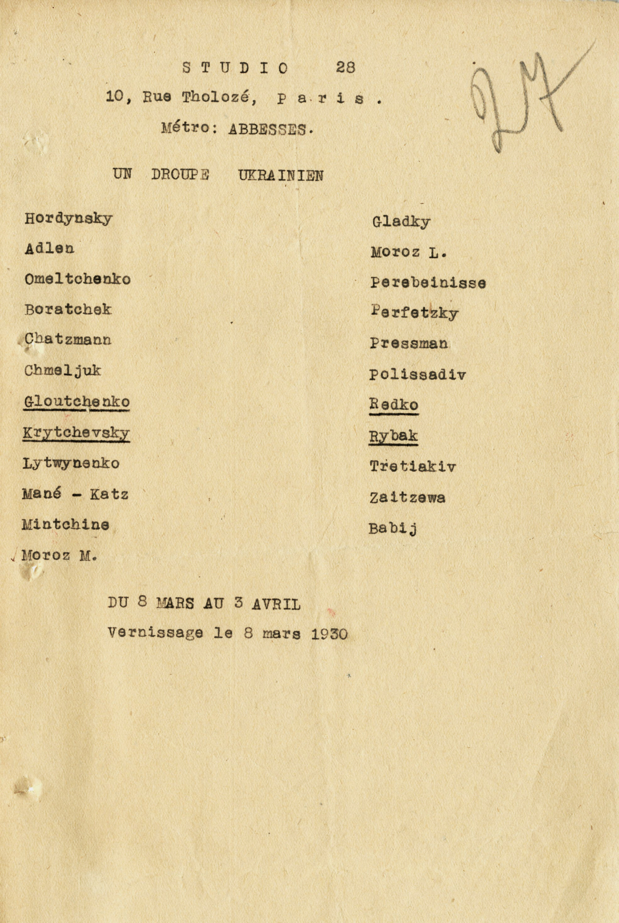 This decision became decisive in M. Hlushchenko’s life. Should the events had developed differently, he could have returned to the USSR and become the object of repressive attention as a former Denikinite, a representative of the bourgeois trends in art, a close acquaintance of Ukrainian emigrants - enemies of the Soviet government, and if nothing else- as a French and German spy. But it happened the way it did.