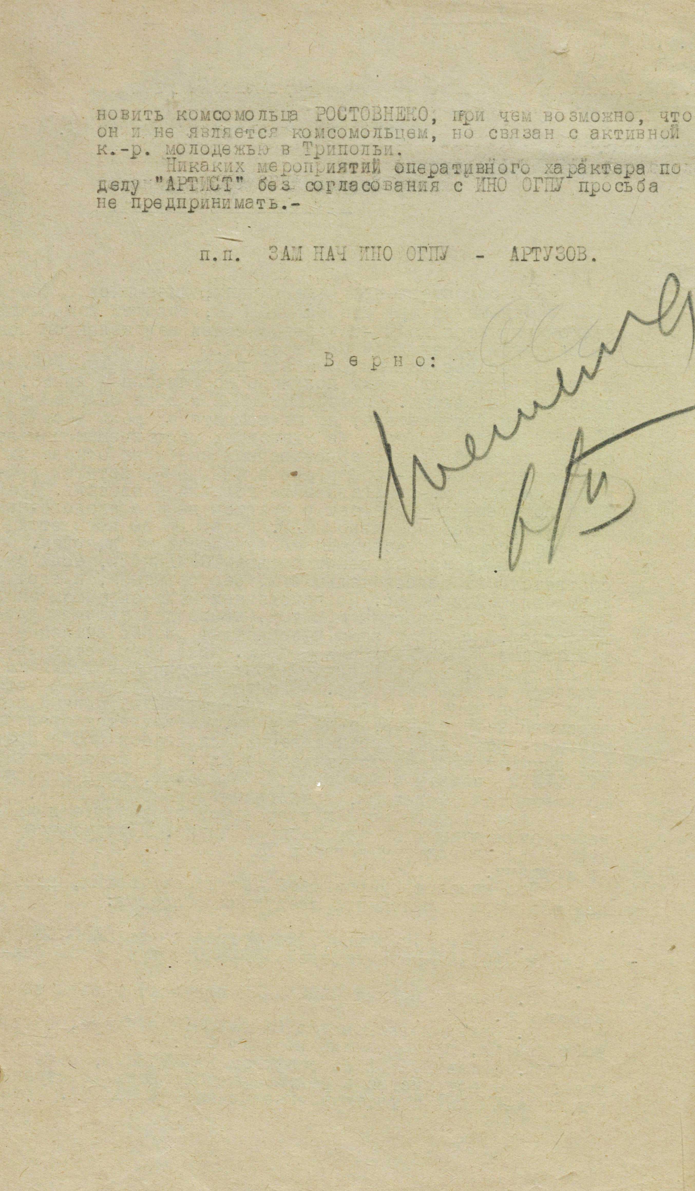At the same time, no operational measures should be taken in the case of “Actor” without the approval of the foreign department of the ogpu.