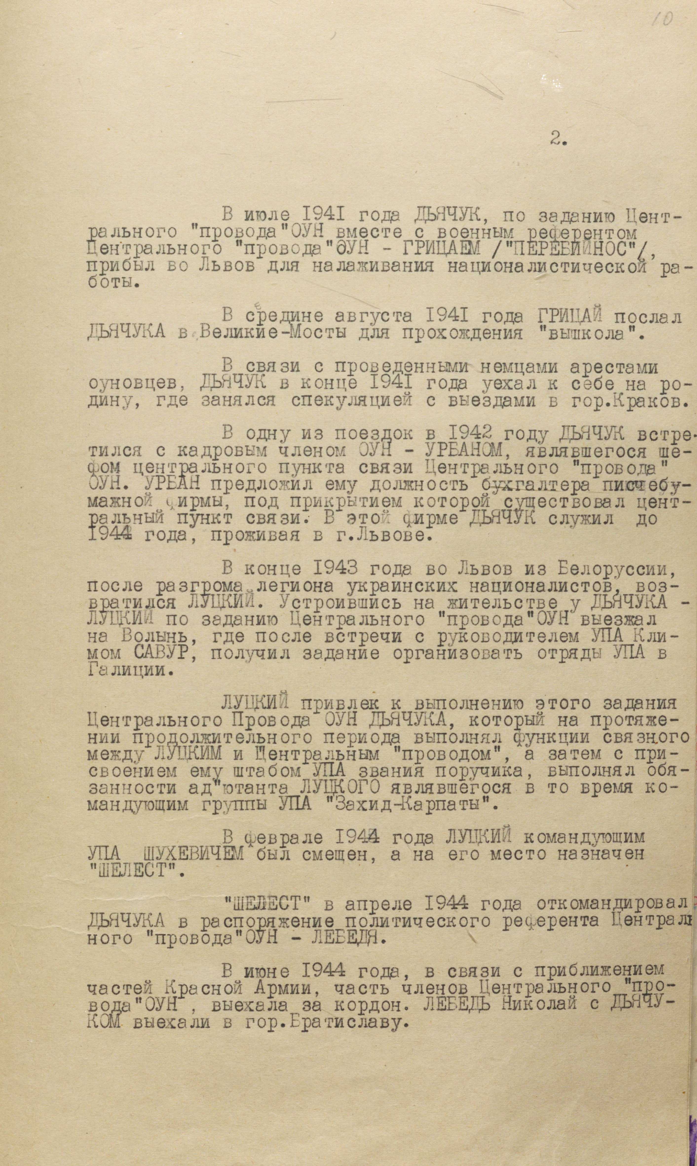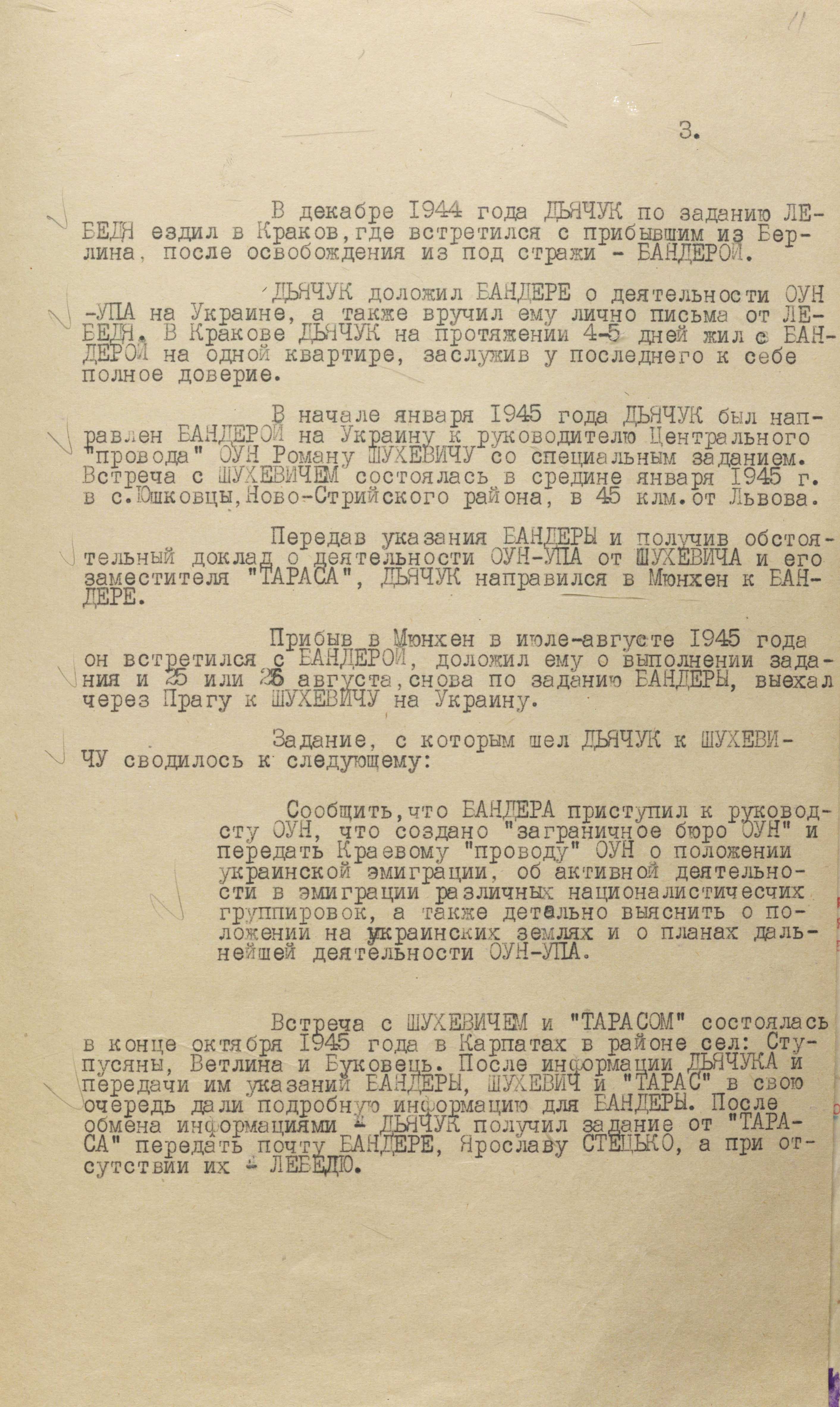 «…Там його притиснули, – йшлося в листі від “Деркача” до Р. Шухевича, – і він у всьому зізнався. Все, що відбулося важливе в Краю, в цьому він був винен. Все, що знав, він виказав більшовикам. Розробив план, як ліквідувати підпілля в Краю і рух за кордоном. Він повинен був організувати знищення Бандери і т. п.» (ГДА СЗРУ. – Ф. 1. – Спр. 30. – Т. 4. – Арк. 213).