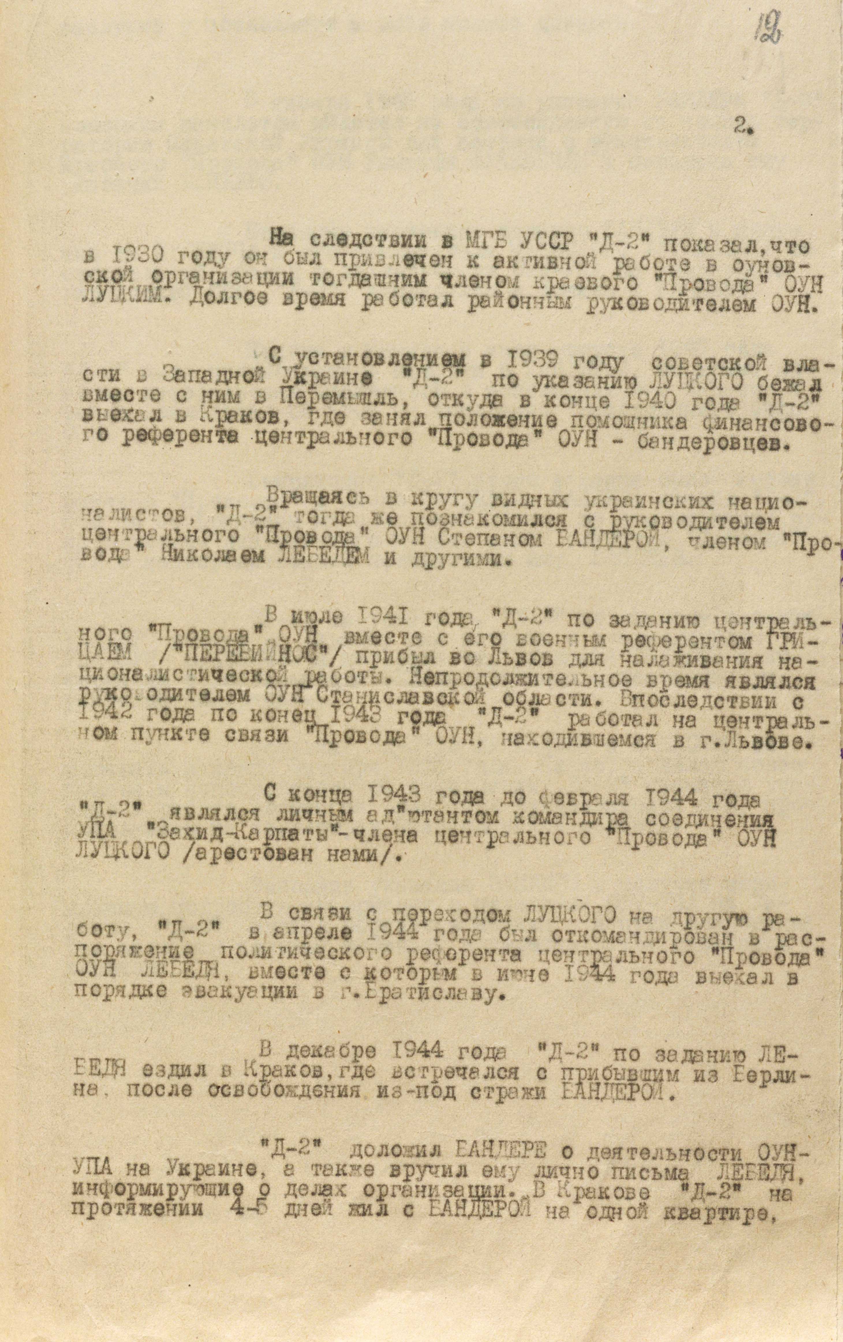 Агент мдб урср «Д-2». Перевірку в СБ ОУН не пройшов