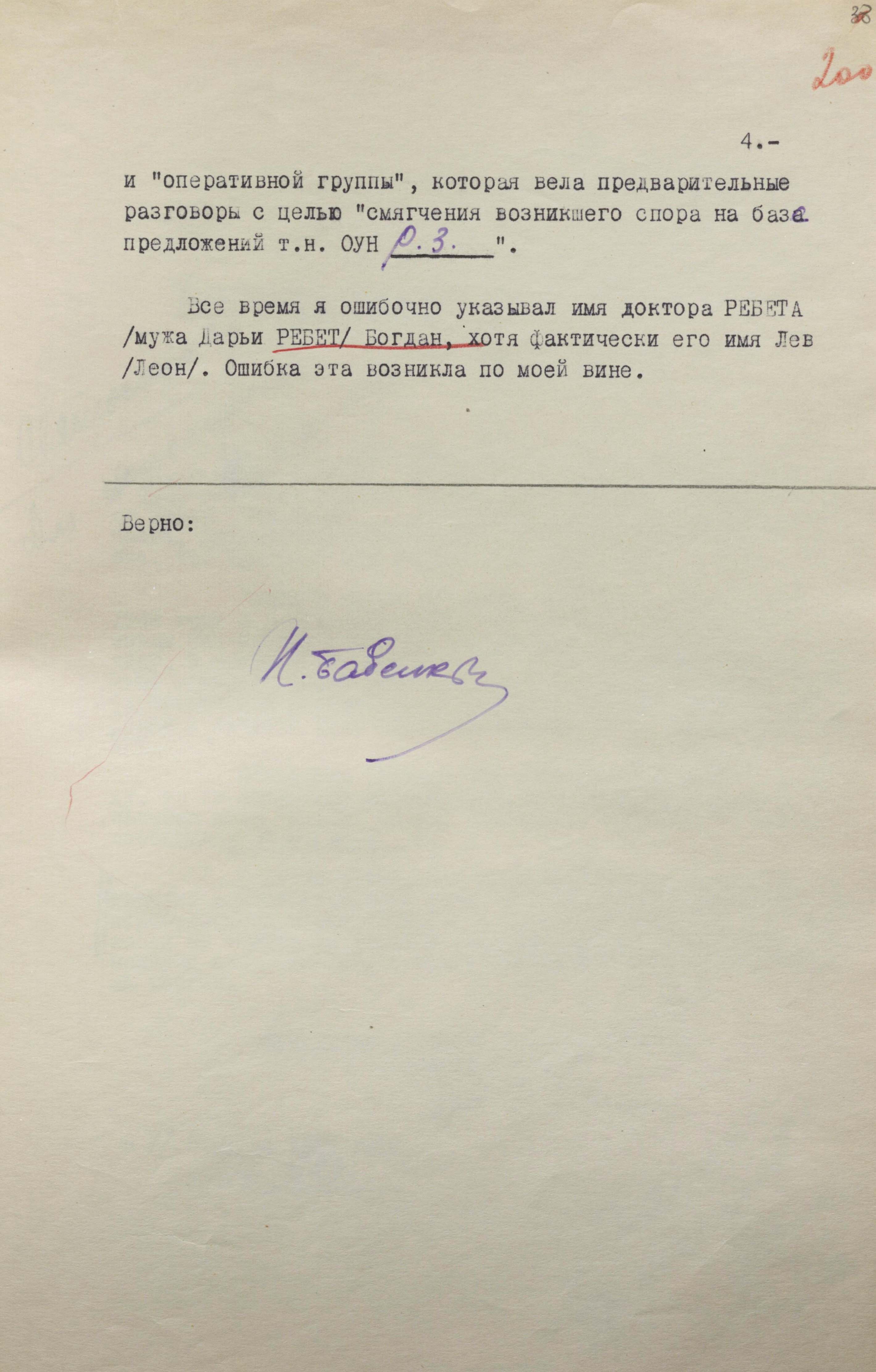 У разі встановлення контакту операція мала перейти в завершальну фазу. Про характер подальших дій свідчать окремі фрази в довідках і резолюції на них. Зокрема, в одній із резолюцій за підписом М. Погрібного зазначалося: «Повідомте “Десні”, що встановленню Ребет Дарії надаємо особливого значення, оскільки вона – член “Закордонного бюро”. Нехай докладуть усіх зусиль для розшуку і затримання її» (ГДА СЗР України. – Ф. 1. – Спр. 13089. – Арк. 15).