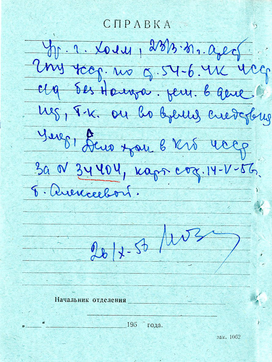 Вочевидь ці невідповідності, а також правки до тексту брошур з москви змусили керівництво кдб урср вдатися до глибшого вивчення біографії М. Грушевського й обставин його арешту та смерті. Відтак у справі з’явилася довідка за архівною слідчою справою № 34404 на Грушевського М. С., підписана капітаном Громовою – співробітницею кдб урср, яка залучалася і до ведення справи на В. Винниченка.