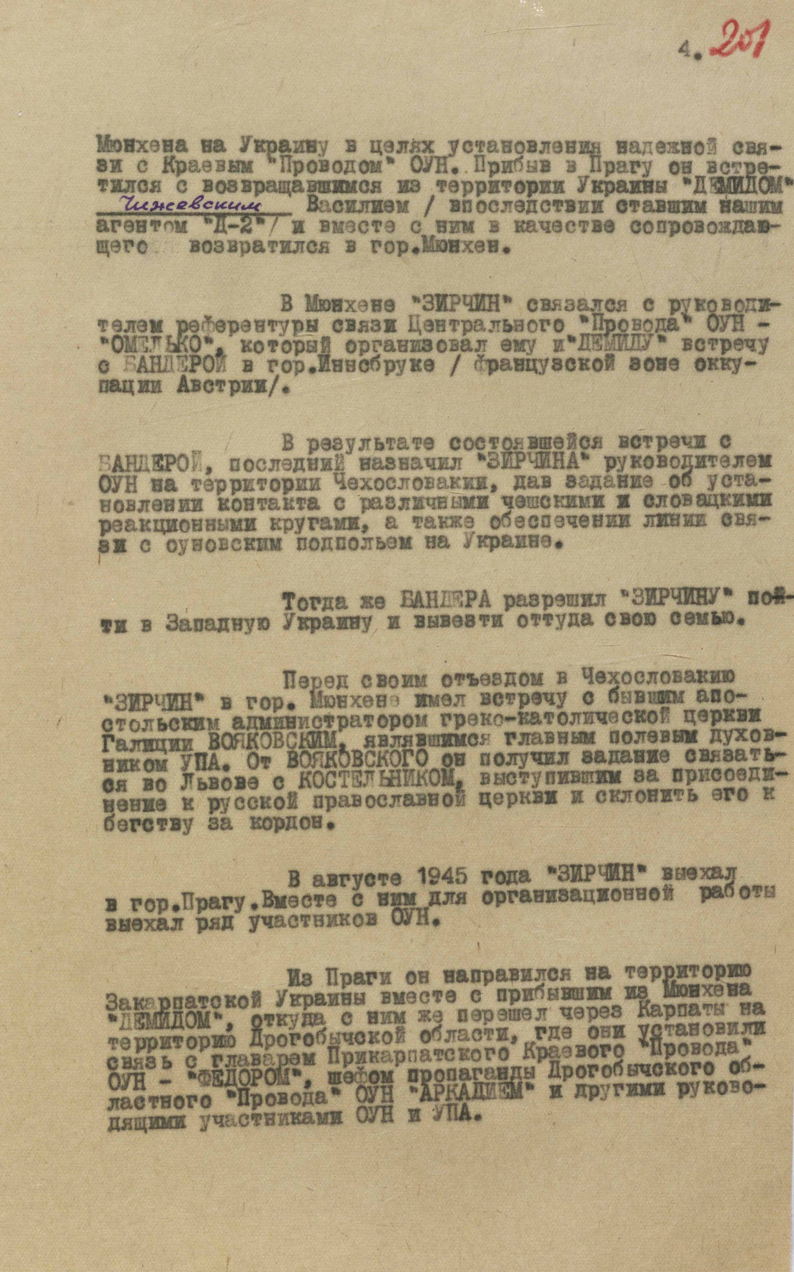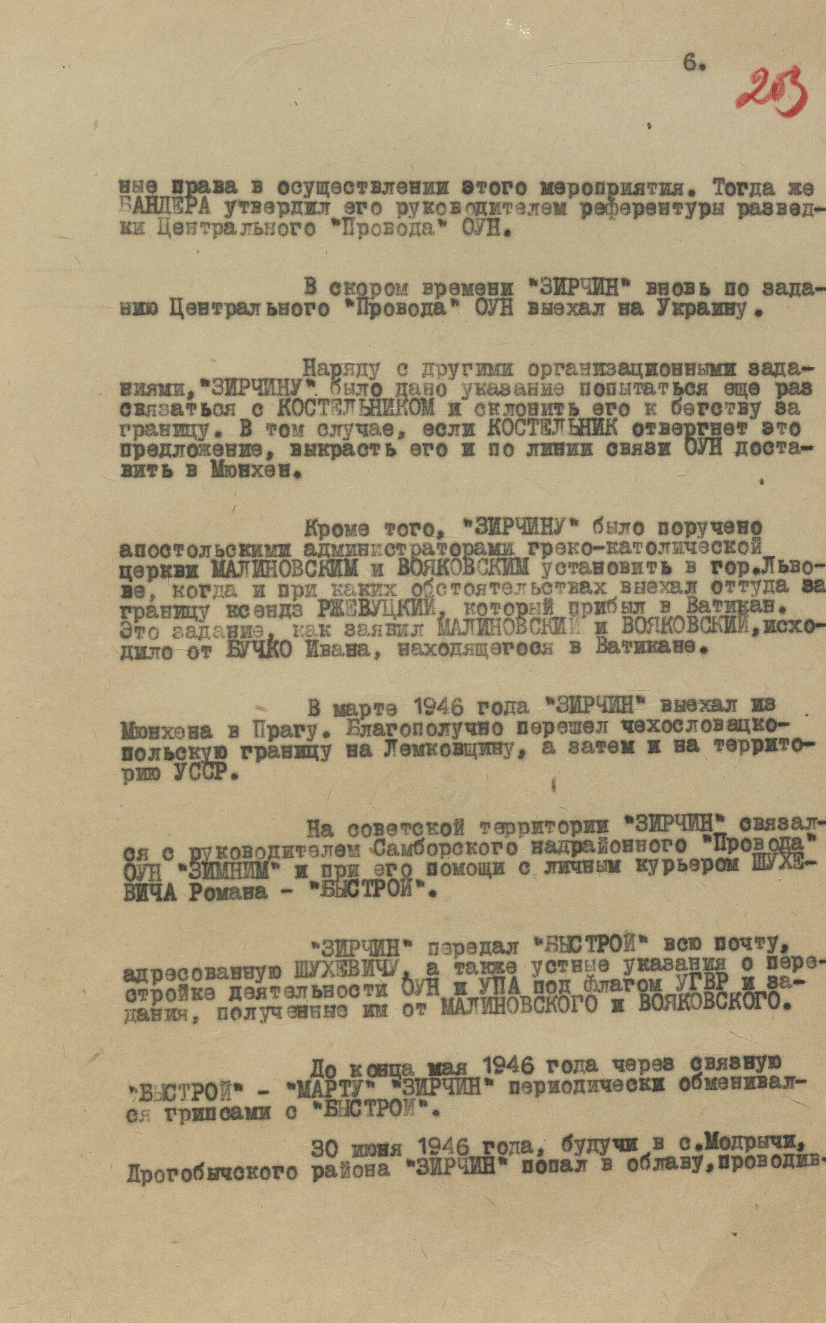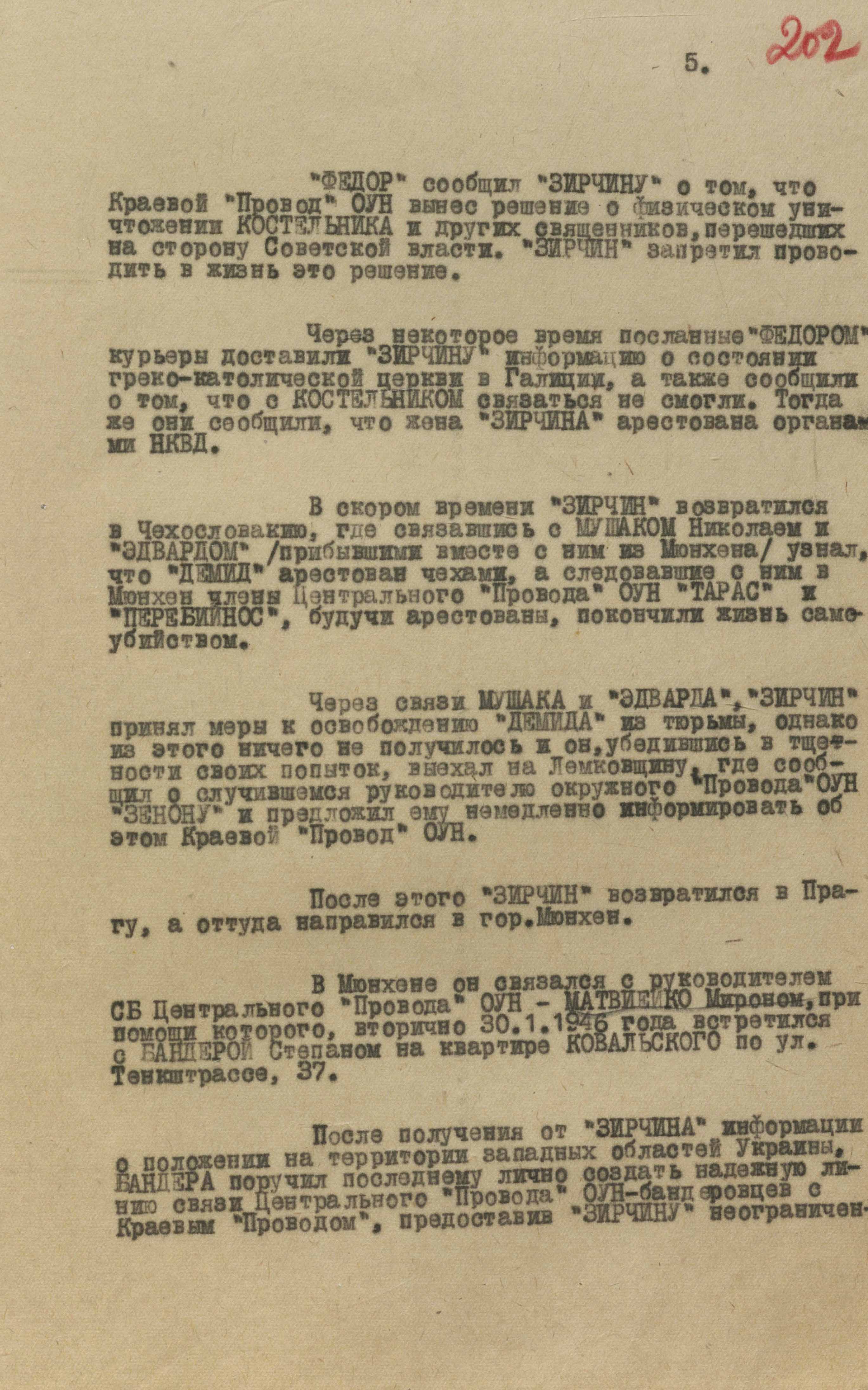 «У випадку, якщо “45” під впливом якихось непередбачуваних причин і обставин, – зазначалося в доповіді у москву, – стане на шлях зради нам, що ми вважаємо малоймовірним, то його підозри про нібито “співпрацю” з нами Матвієйко і “Бистрої” призведуть до знищення їх або до втрати ними довіри з боку Центрального Проводу ОУН і до усунення від займаного нині керівного становища в ОУН, що для нас також оперативно вигідно» (ГДА СЗРУ. – Ф. 1. – Спр. 33. – Т. 2. – Арк. 31).