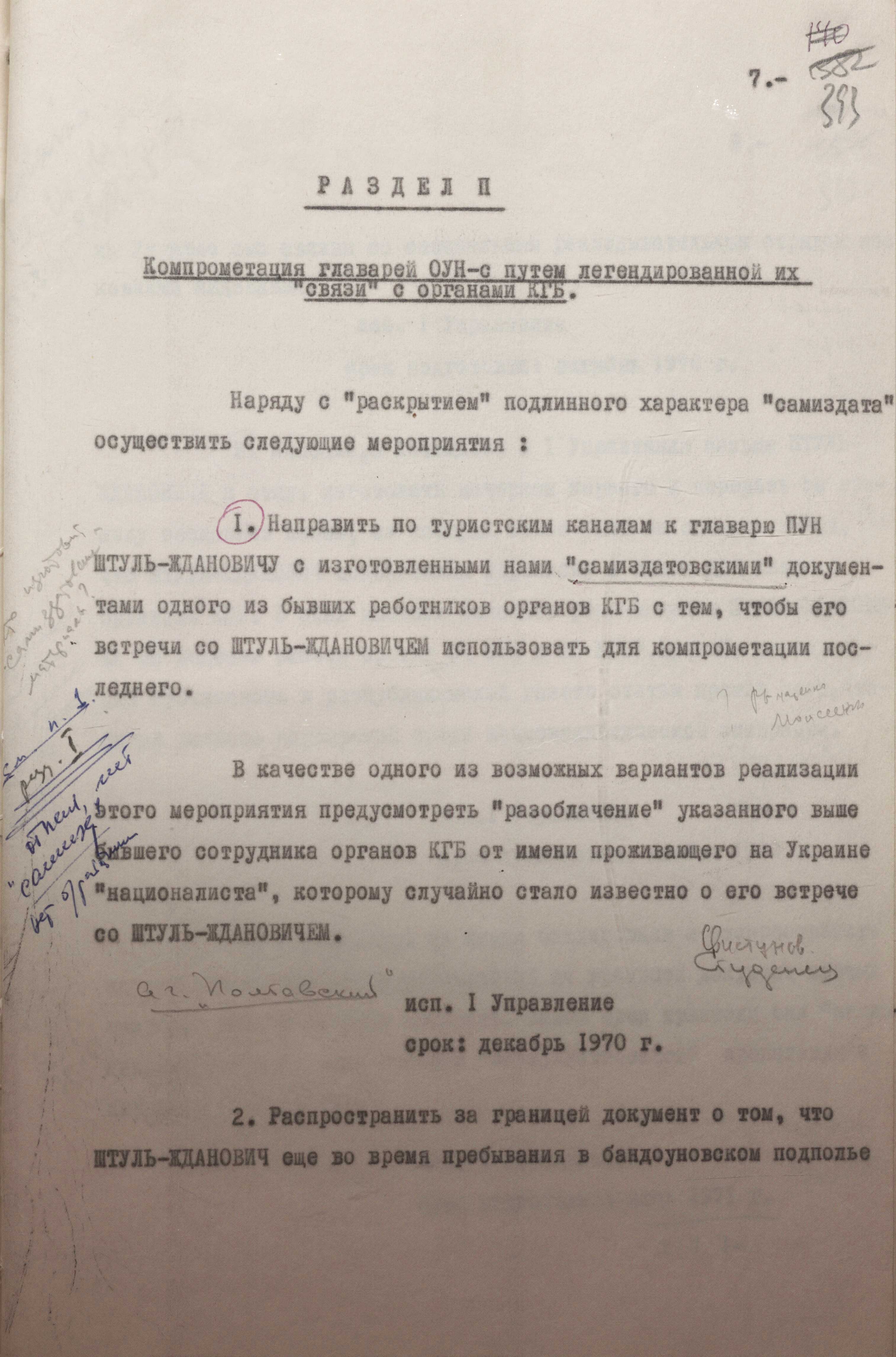 “As one of the possible options for the implementation of this measure,” said the plan, “to organize an “exposure” of the said kgb officer by a “nationalist” living in Ukraine who allegedly accidentally learnt about his meeting with Shtul-Zhdanovych” (FISU – F.1. – Case 15477. – Vol. 2. – P. 391).