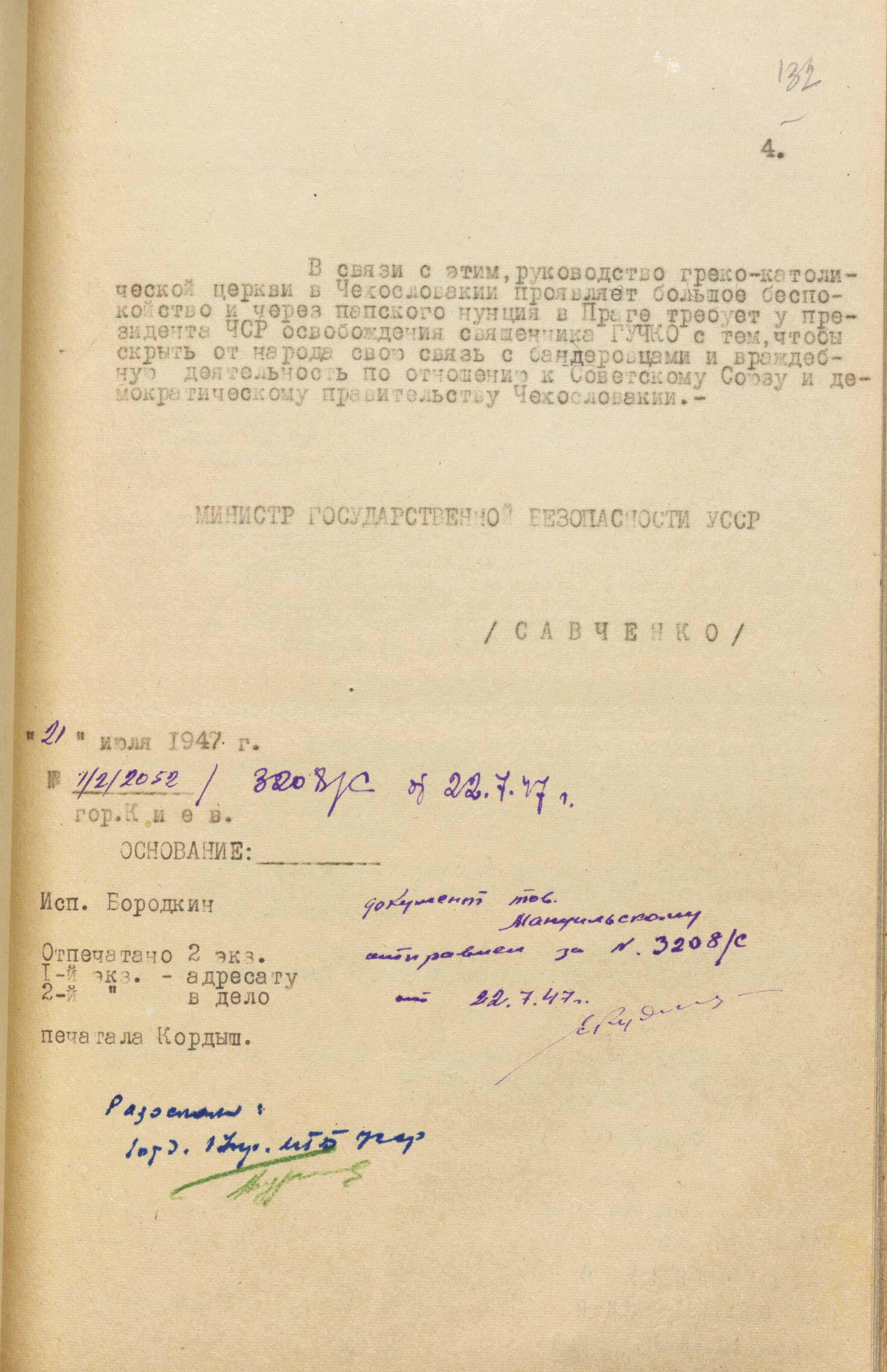 Інші матеріали справи свідчать про те, що в подальшому цілеспрямовано збиралася інформація про ГКЦ і нібито якусь незаконну діяльність українських священників. Зазначалося, що загальна кількість вірних – приблизно 250 000 осіб. Керівництво церкви на чолі з єпископом Гойдичем знаходиться в Пряшеві. Кістяк вірних становлять українці, які мешкають у Словаччині, а також ті, що емігрували з Польщі і радянської України, зокрема Закарпаття.